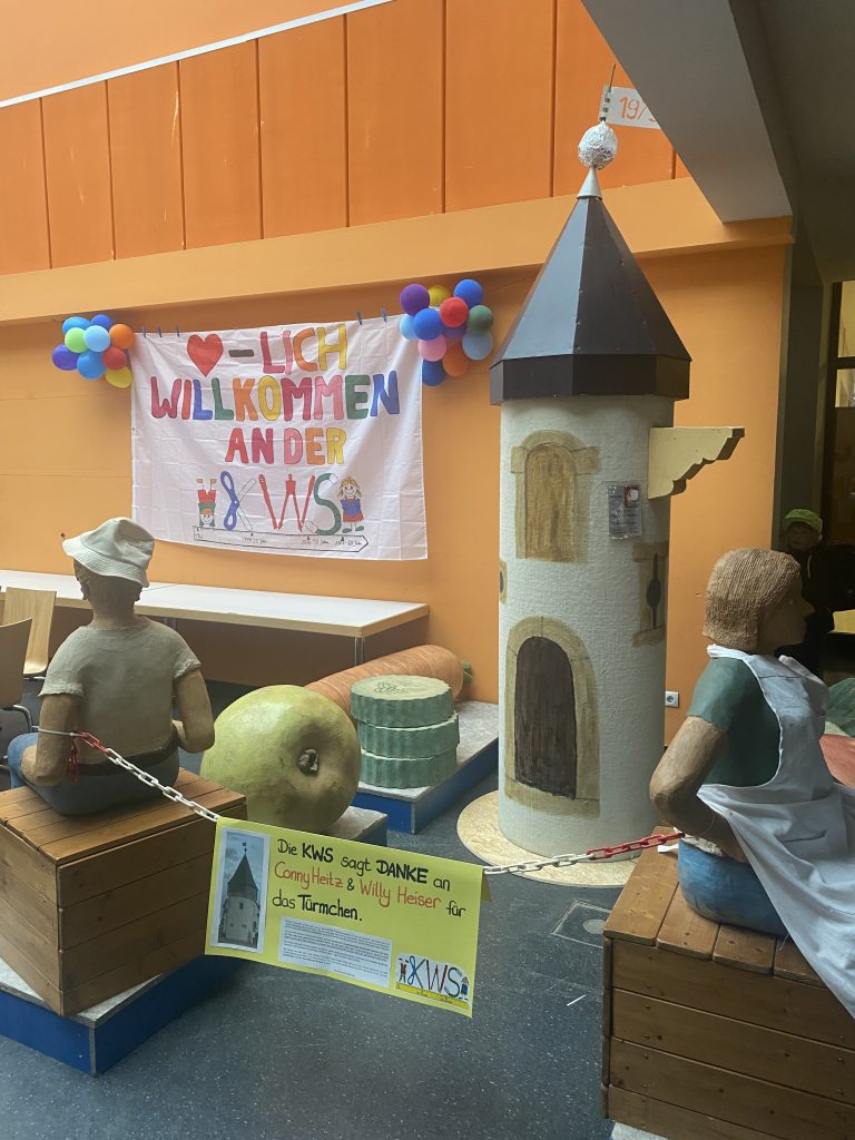 Seit Ende Oktober ziert ein ganz besonderes Wahrzeichen von Lambsheim unsere Mensa: der Nachbau des Lambsheimer Türmchens. Das rund drei Meter hohe Modell, gebaut von Conny Heitz und Willy Heißer, wurde mit viel Liebe fürs Detail gestaltet – ein echtes Schmuckstück.