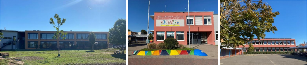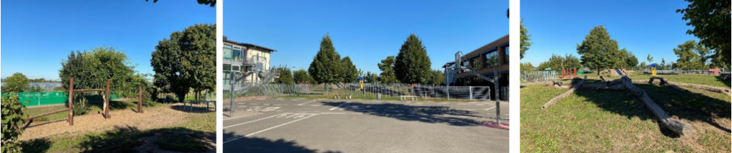 Die Kinder haben die Möglichkeit, sich sowohl auf dem asphaltierten Schulhof auszutoben (dort gibt es zwei Basketballkörbe, eine Tischtennisplatte und mehrere aufgemalte Hüpfspiele), als auch auf der riesigen Wiese mit Baumstämmen zum Balancieren. Dort gibt es auch ein Minispielfeld vom DFB, zwei Klettergerüste, Hangeln, Rutschen, eine Hängematte, Wackelbalken, einer Boulebahn und vieles mehr. Der Förderverein hat außerdem jeder Klasse eine riesige Kiste mit Kleingeräten und Spielen spendiert, die von den Kindern für große und kleine Pausen genutzt werden dürfen. Immer wieder werden vom Förderverein weitere Anschaffungen getätigt, auf Wunsch der Kinder. So gab es beispielsweise letztens erst Sandförmchen und Malkreide für alle Erst- und Zweitklässler und Basketbälle für die Großen