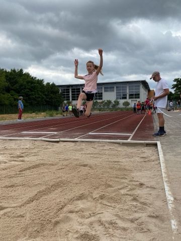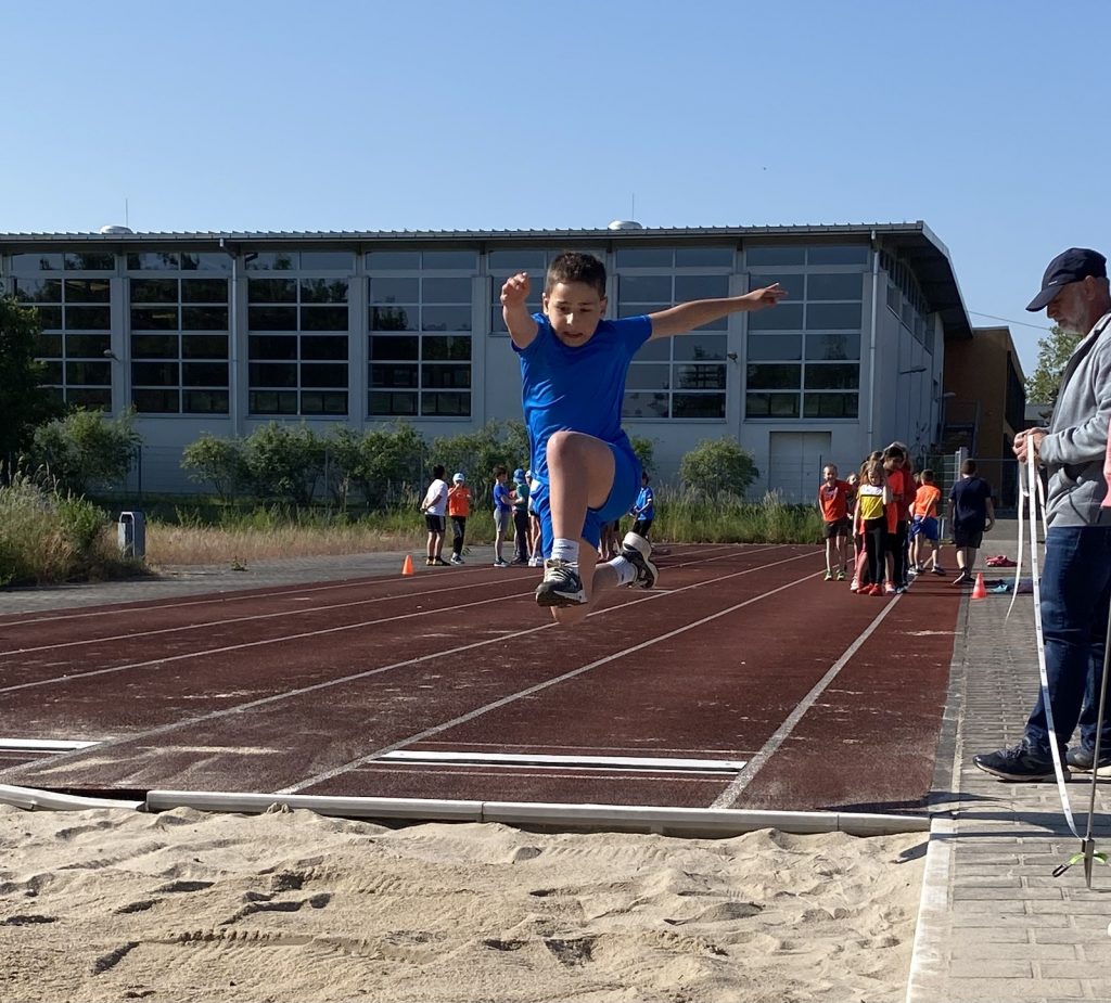 Auf dem Sportplatz wurde im Rahmen der Bundesjugendspiele wieder eifrig gesprungen, geworfen und gerannt. Dabei erhielten wir beim Messen und Notieren der Ergebnisse wieder Unterstützung von zahlreichen hilfsbereiten Eltern, sowie von unseren AG-Leitern und Leichtathletikexperten, Herrn Achenbach und Herrn Maurer.