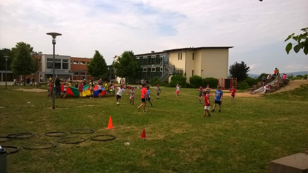Zusätzlich wurde ein vielfältiges Bewegungsangebot auf dem restlichen Schulgelände organisiert, das aus zahlreichen Spiel- und Sportstationen bestand. Dieses wurde von den Kindern sehr gern in Anspruch genommen – alle waren begeistert in Bewegung.